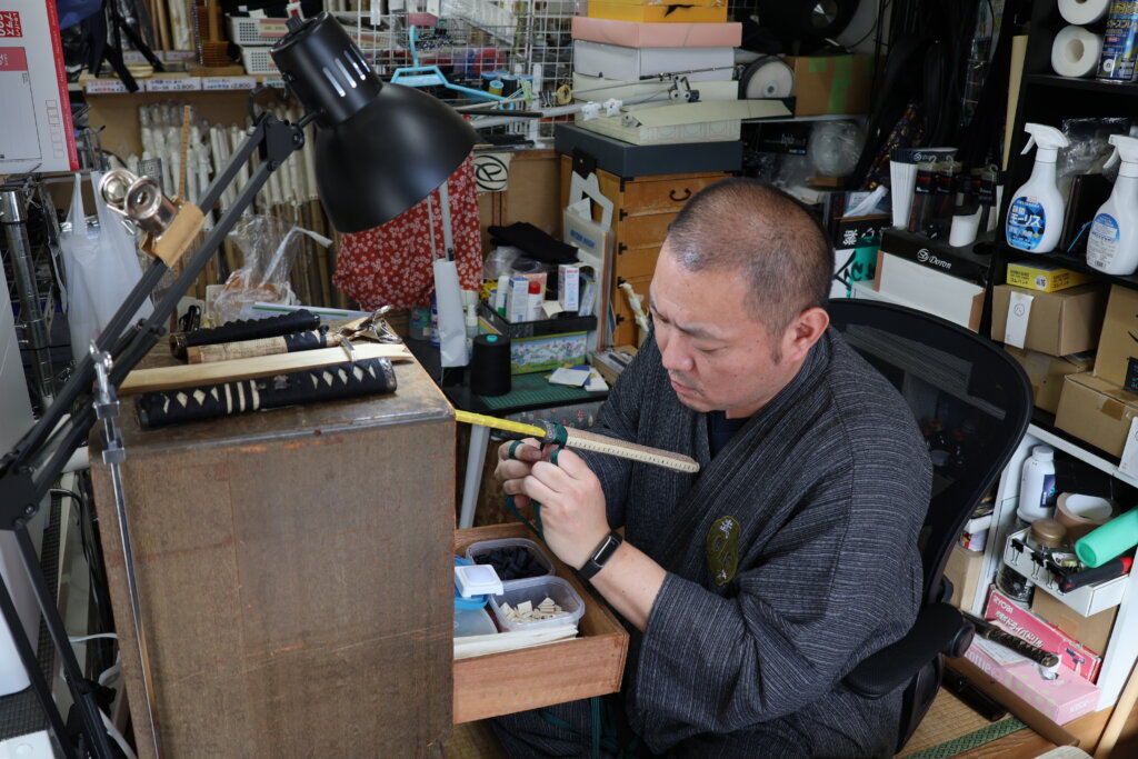 池田 私自身が鮫鞘を愛用していて、私の抜刀道の師匠の一人が鮫革製品を手がける職人でもあったんです。私もはじめはお客として依頼をする側でしたが、いつしか興味が高じて自分でもつくりたくなった。そこで先生にお願いをしてつくり方を教わり、自分が使うものであればひととおりは自分でつくれるようになったんです。
