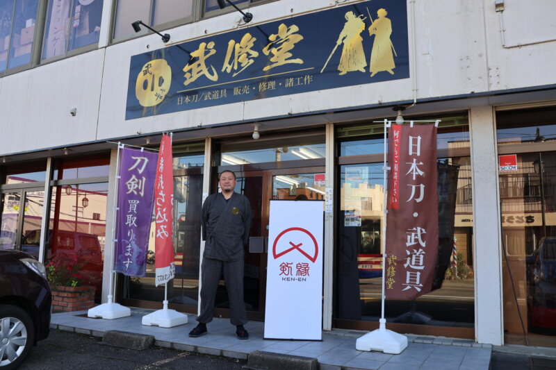 ──YouTubeチャンネル「藁斬り抜刀斎」を運営されている池田憲人さん。日本刀による試し斬りや日本刀に関する知識を中心としたそのチャンネルは登録者数26万人を誇る人気のコンテンツです。そんな池田さんが昨年8月、福島県郡山市に日本刀と武道具のお店をオープンしましたが、それがこの「武修堂」ですね。