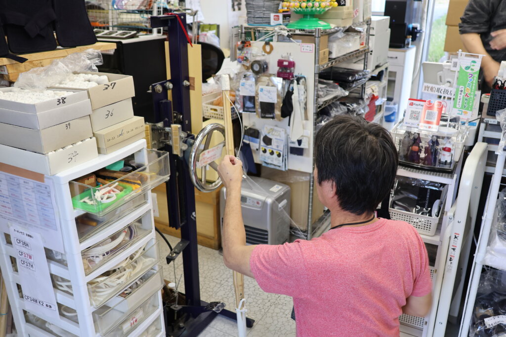 その先生は職人としていくつかの武道具店に商品を卸していたんですが、いまから5、6年前に事故で亡くなってしまいました。急に亡くなられたことで困ったのは武道具店さんで、先生と取り引き途中だった商品がいくつかある、と。そこでその商品をつくるよう頼まれたのが私で、以降は先生の仕事を受け継ぐようになりました。