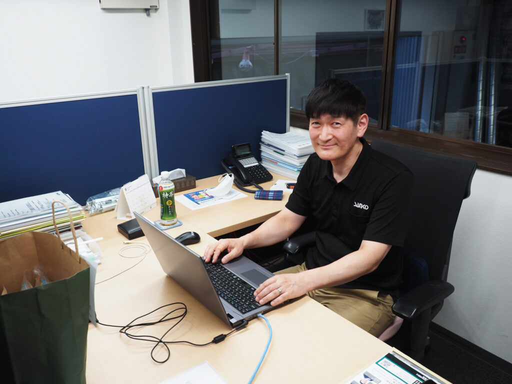 柔らかい笑顔が印象的な細川代表。建築資材や土木用資材の製造・販売をメインとするサンコー物産の代表取締役で、2021年に会社は47期目を迎えました。社員の家族を含めると100人以上の人生を支え、「100年続く企業を目指したい」と力強く語ります。
