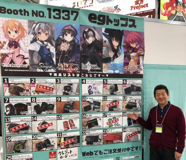 きっかけは経営者の勉強会です。そこで知り合ったゲームソフト会社の方に「うちのキャラクターグッズを作りませんか?」とお誘いいただいたんです。こういうジャンルの商売があると、その時初めて知りました。