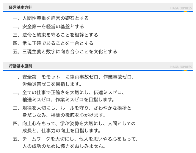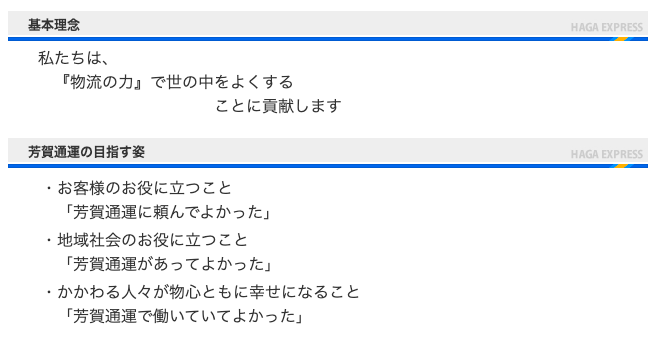 実は何年か前に、「基本理念」「芳賀通運の目指す姿」「経営基本方針」「行動基本原則」を作ったんですよ。
