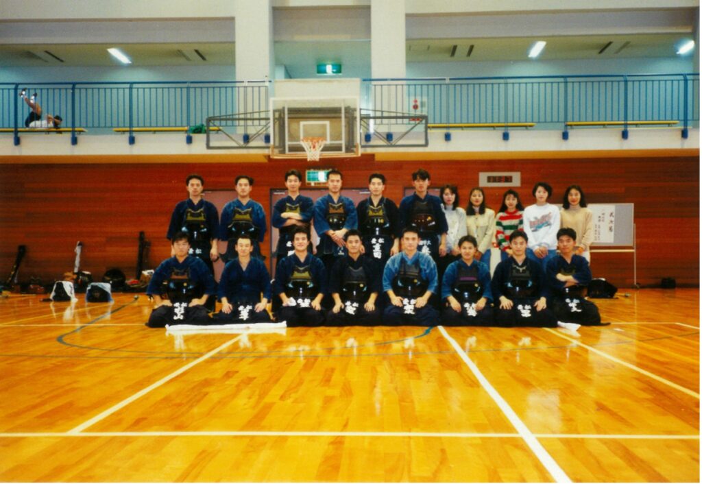 学生時代には大会結果ではこれといった成果はありませんが、強く記憶に残っているのは我々が4年生になったときに練習時の学年の並び順を変えたこと。準備体操や素振りのときには1年生が一番前でその後ろに上級生が並んでいたのですが、それを4年生が一番前に並ぶようにしたんです。