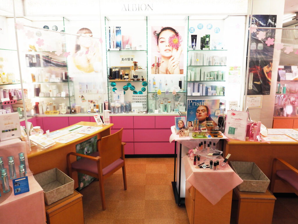 アルビオン、カネボウ、ヒノキ肌化粧品など、対面販売のカウンセリング化粧品を販売しています。今後は対面以外で、EC販売の商品も取り扱っていきたいと考えています。