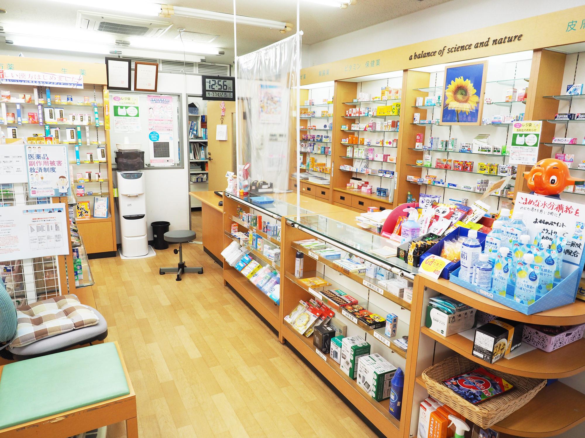 まるで大きな病院の待合室のように広々としていて、安心感のある『ひまわり薬局』。駅前と病院の隣に2店舗あり、立地も抜群です。