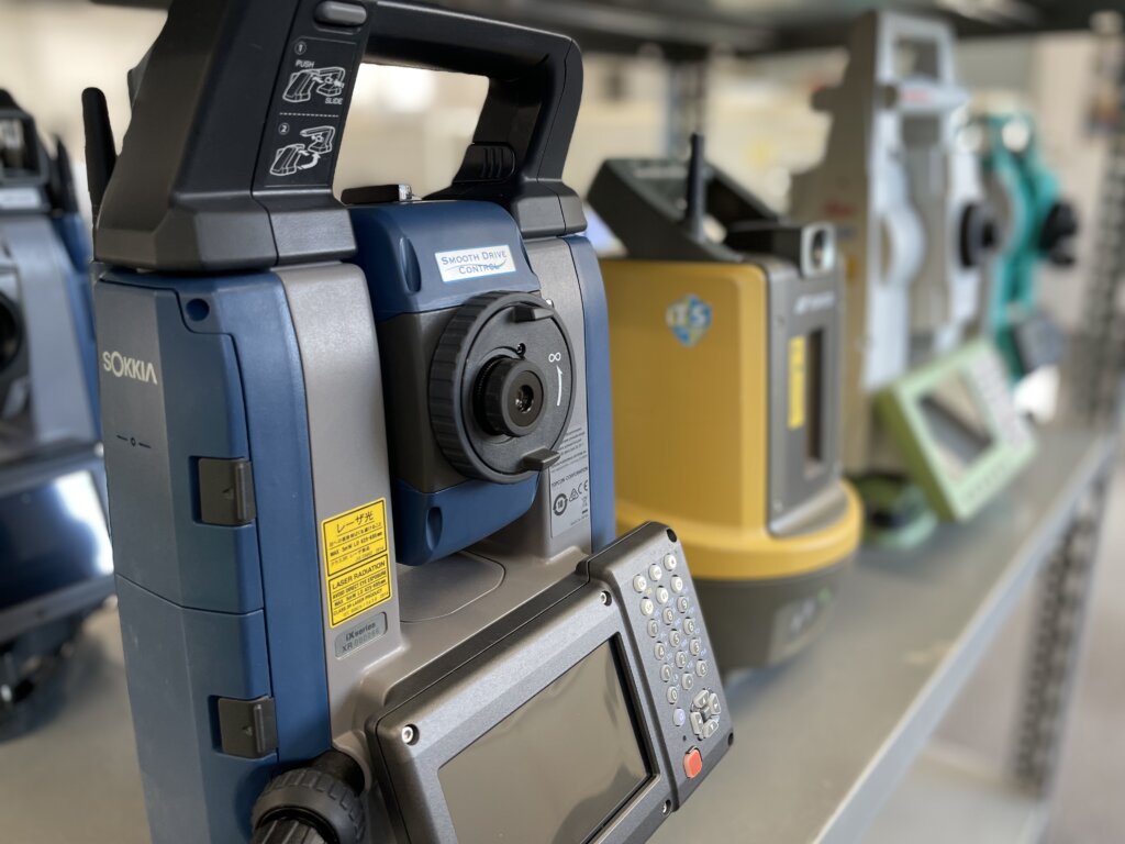 会社創業当時は測量機器の販売のみでしたが、売った商品も修理できなければいけないということで機器の整備もはじめるようになり、その後販売が厳しくなるとレンタル業を開始、いま現在では比率的にはレンタルのほうが多いくらいになりました。そのほかにも、たとえば竹刀の計量に使うような計りも取り扱いますし、新基軸としては測量業務の支援がありますね。いまはもう土木、建築の世界では三次元の設計データが当たり前となっているので、ドローンを飛ばして計測をした三次元の設計データをお客さまに納品する業務も展開するようになりました。