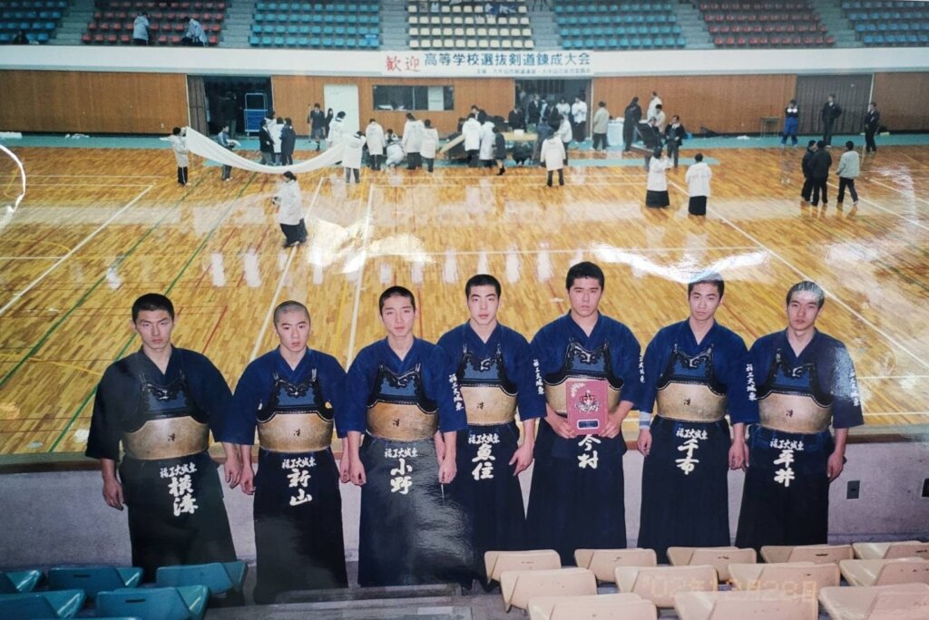 修 先生に厳しく言われたんです。最初の頃は勉強も剣道も中途半端な感じだったので、「どっちかをちゃんとしなさい」みたいな感じで。それで、勉強はあんまりしたくないから剣道を一生懸命頑張ろうって選択。一生懸命やった結果として、2年生のときの新人戦では団体戦で県3位にはなれました。僕は中堅だったかな。誰かが飛びぬけて強いというチームじゃなくて、みんなで何となく勝っていけた感じでした。小さい町なので本当にみんな仲もよくて、小さい頃から一緒にやってきた仲間ですね。