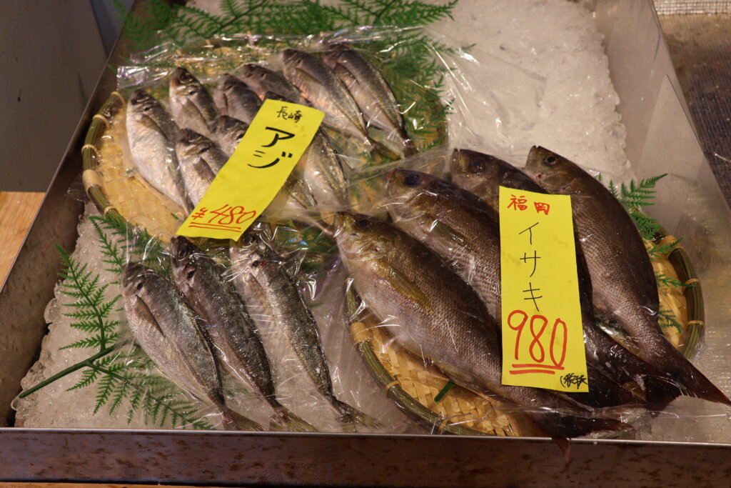俊彦 この辺りの港の市場はもうないんですよ。ここがオープンして3~4年はあったんですけど、魚もちょっと少なくなったし、福岡の方が相場が上がるからそっちにモノが流れるようになったりして。いまは博多で一番の仲買さんから仕入させてもらってます。本当にもう、魚は間違いない。本当に良い魚を安く仕入れられてる。自分が博多で競って買うこともできますけど、やっぱり顔を覚えてもらおうと思ったら大変。人数が多いし競りの場所もたくさんあるし。なので、絶対的にに信頼できる仲買さんから買わせてもらってます。