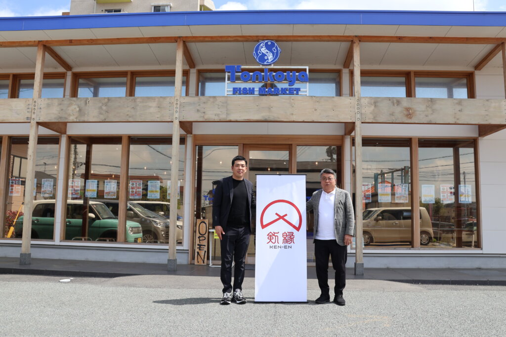 福岡県宗像市。日本神話に登場する日本最古の神社の一つである宗像大社が鎮座する町に「とんこや宗像店」はあります。株式会社 Tonkoya Companyは、「1950年創業の魚屋が手掛ける目利きの鮮魚を楽しめる居酒屋」として「とんこや」ブランドを2店舗、「鯔背(いなせ)」ブランドで宗像近郊に2店舗を展開しています。また、とんこや宗像店に隣接して、祖業である魚屋の新形態「Tonkoya FISH MARKET」があり、どこも多くのファンで賑わっていて、福岡の剣縁会員さんにも常連さんがいらっしゃるとか。取締役副社長に就任した魚住修さんと、お父上で二代目・現社長の魚住俊彦さんに、その歴史や夢を伺いました。