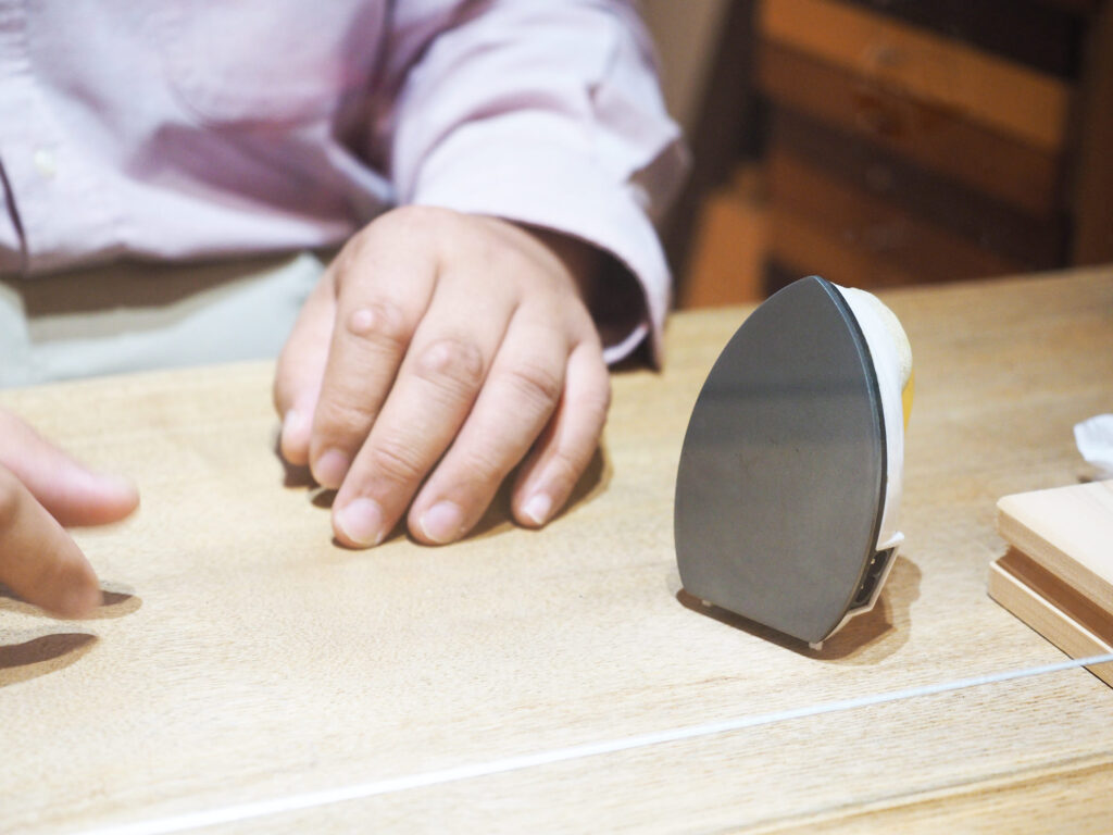 木は細いストローの集合体なんです。ちょっとへこんでも、水をかけて当て布をしてアイロンを押し当ててジュッとやると、凹んだストローがふやけて膨張するので元の形に戻ってくるんですよ。