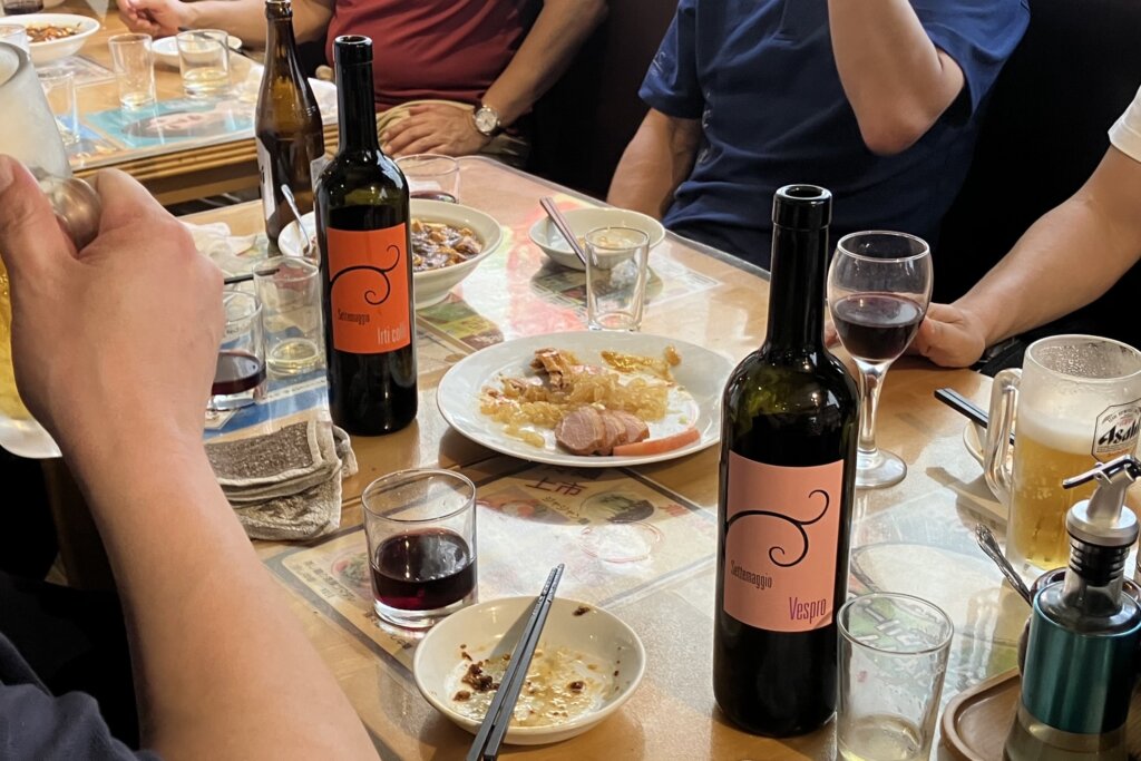 懇親会の会場では、「赤ワインイリティ・コッリ2023」と「ロゼワイン ヴェスプロ2022」のテイスティングが行われました。