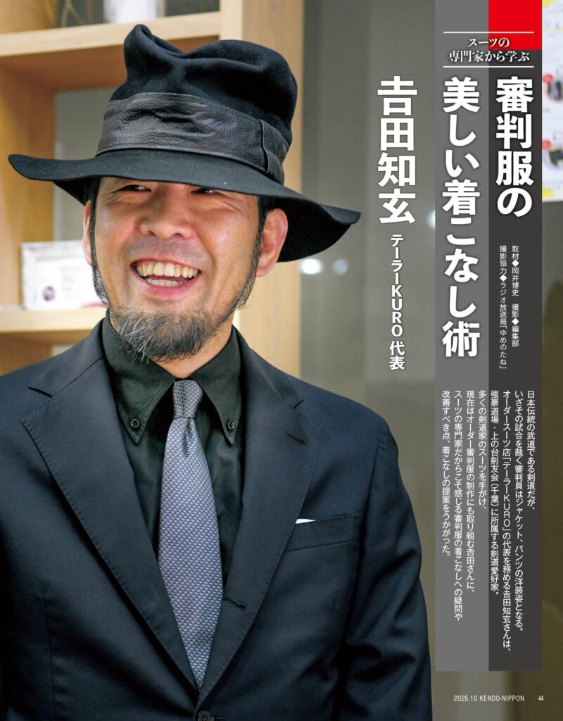 2025年10月号の『剣道日本』で、吉田知玄さん(テーラーKURO)による 「審判服の美しい着こなし術」が紹介されています。