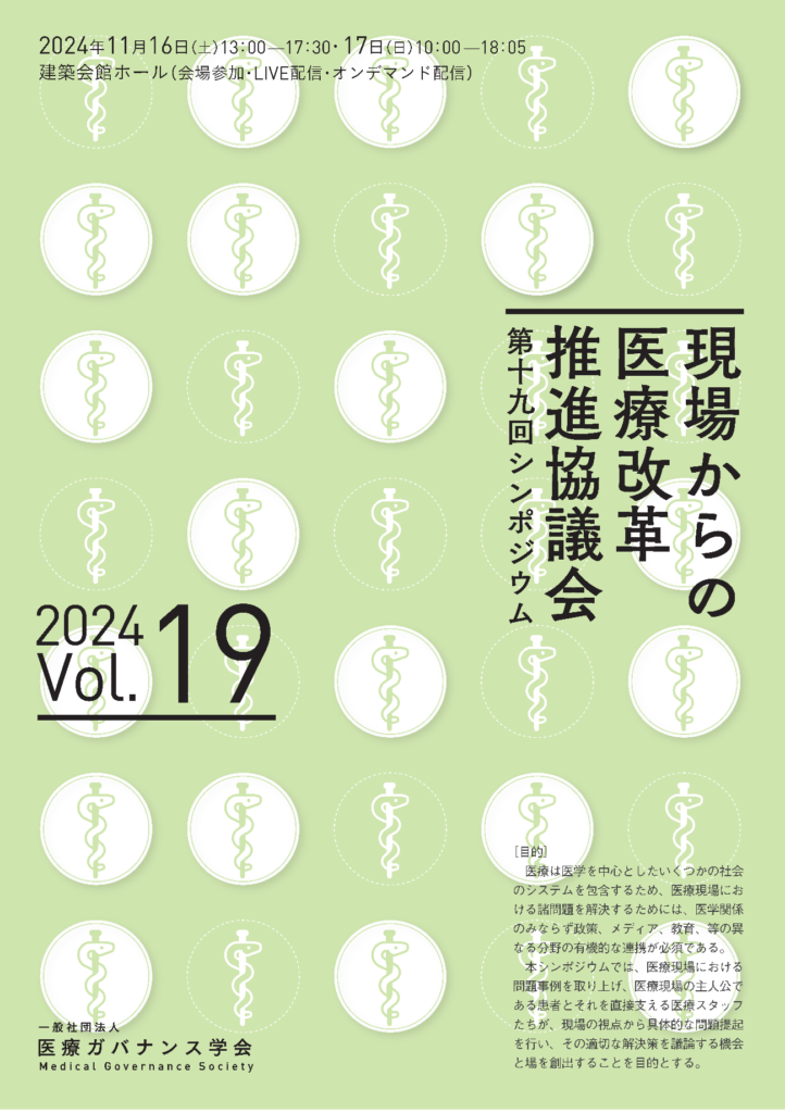 2006年より毎年「現場からの医療改革推進協議会シンポジウム」を主催、19回目を迎えます。11月16日(土)・17日(日)に、会場参加・Live配信・オンデマンド配信(1週間)で開催します。
