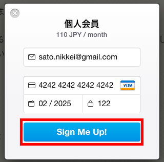 情報を入力しましたら、画面下部の「Sign Me Up!」をクリックしてください。