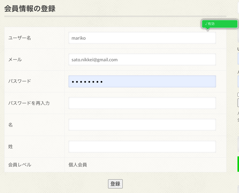 メールに記載されたURLをクリックすると、『』に移ります。入力欄にご記入の上、「登録」ボタンを押してください。