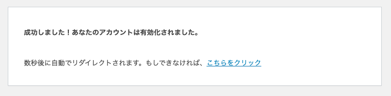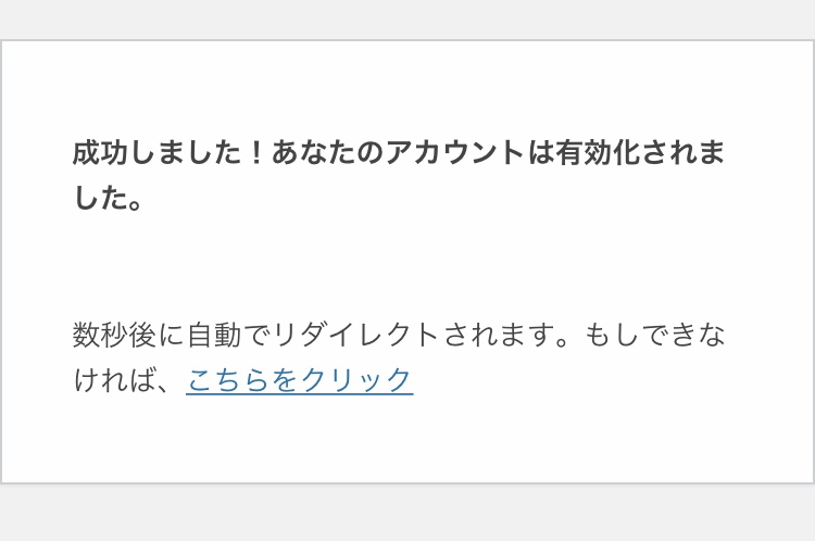 URLをクリックし、以下の画面が表示されましたら、アカウントの有効化成功です。