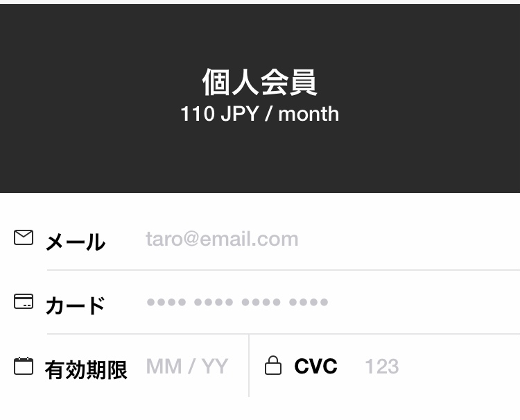 Stripeの決済画面に移りますので以下の項目のご入力をお願いいたします。