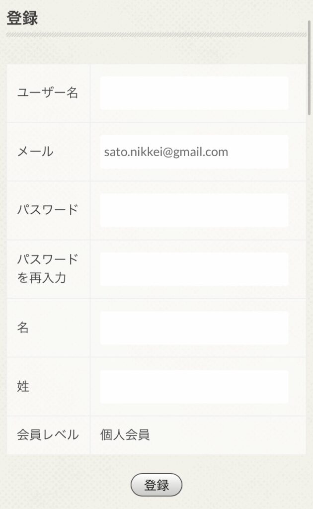 メールに記載されたURLをクリックすると、登録ページに移ります。入力欄にご記入の上、「登録」ボタンを押してください。