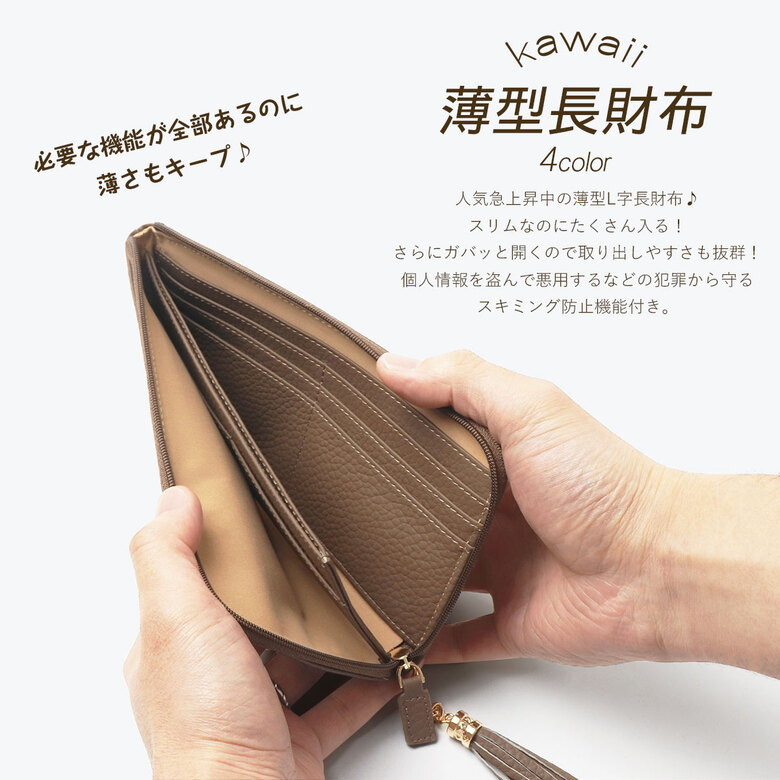 人気急上昇中の薄型L字長財布。スリムなのにたくさん入ります。