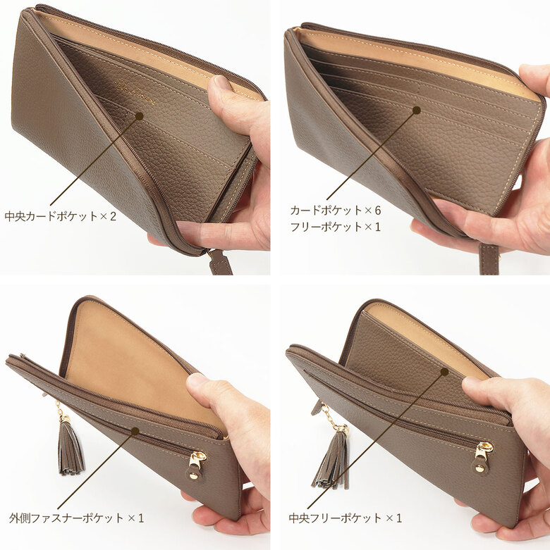 ・仕様:中央カードポケット × 2 中央フリーポケット × 1 フリーポケット × 1 カードポケット × 6 外側ファスナーポケット × 1