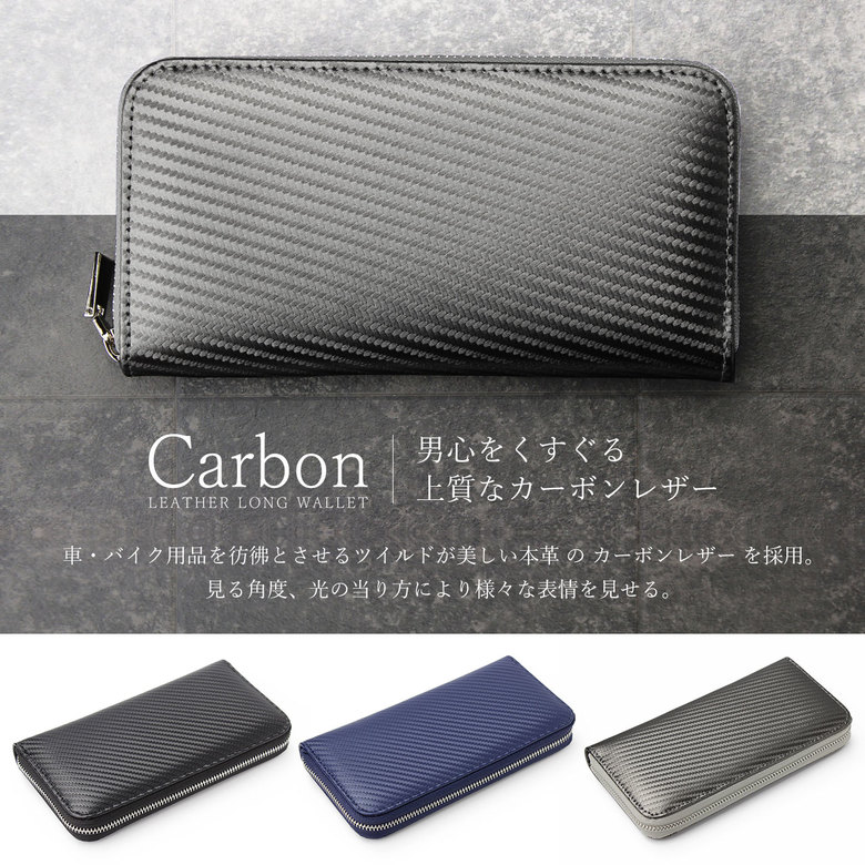 車・バイク用品を彷彿とさせるツイルドが美しい本革 の カーボンレザー を採用。 見る角度、光の当り方により様々な表情を見せる。