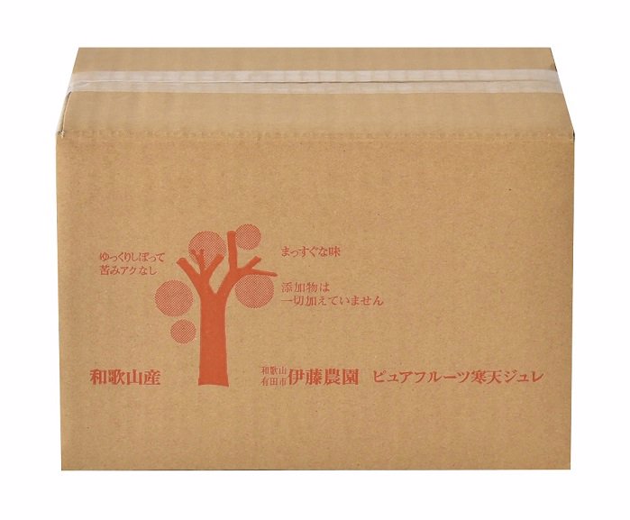 ぷるるん食感!原料は果実と粗糖だけ。 和歌山産柑橘のみ使用した寒天ゼリーです。 伊藤農園の100%ピュアジュースをベースに安心、 安全な美味しいゼリーが出来上がりました。 食物繊維をたっぷり含んだ寒天とミネラル豊富な粗糖、100%ストレート果汁でできた体に優しい ヘルシーなゼリーです。