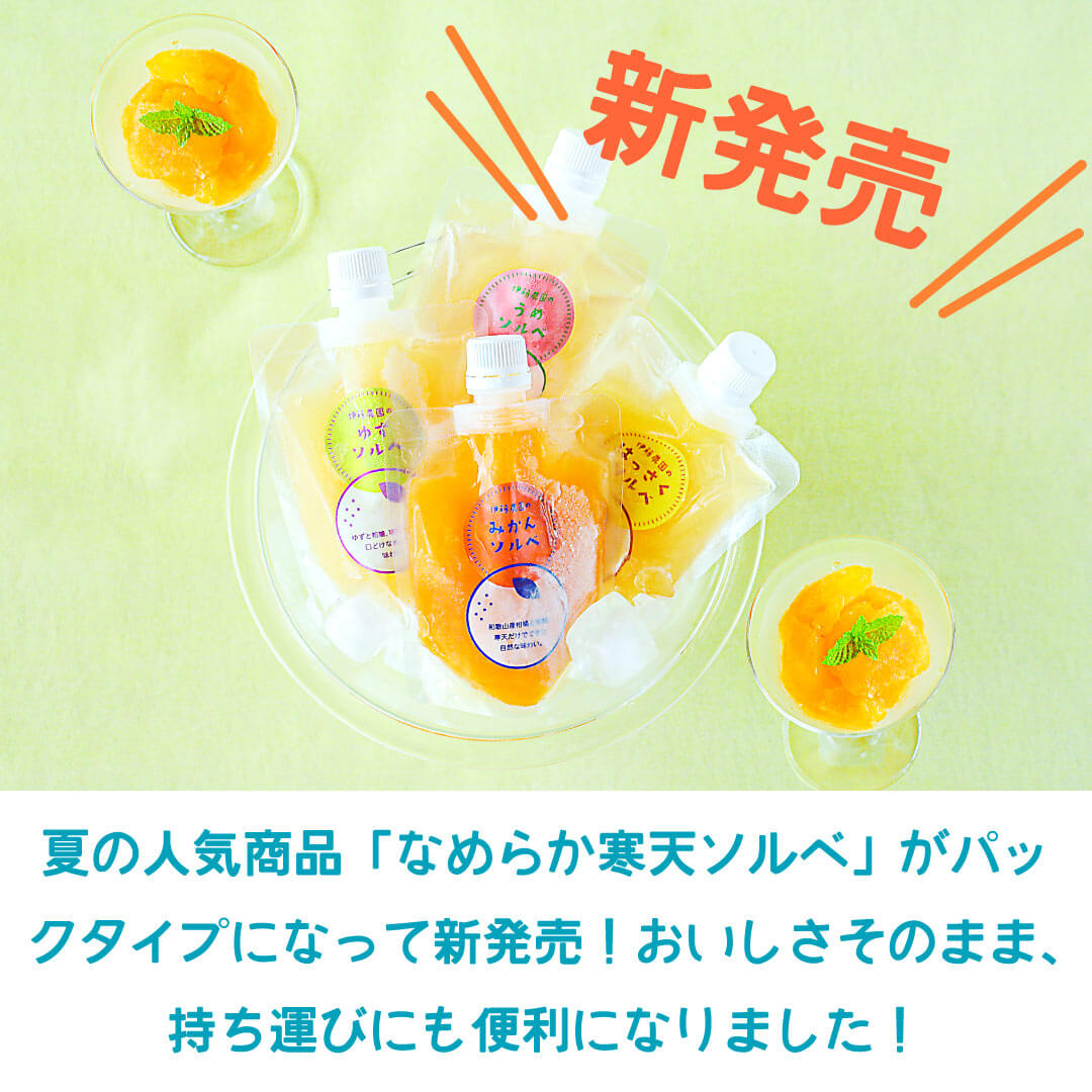 果物王国和歌山から「みかん」「梅」「はっさく」「ゆず」の4種類のお味をご用意。