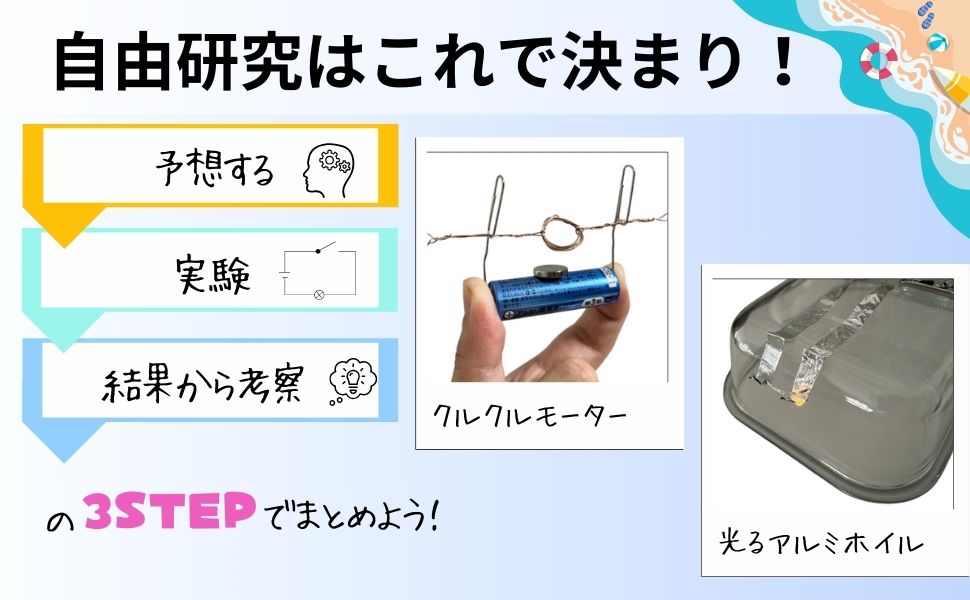 学校の授業時間では実物に触れる時間が限られています。理解しきれなかった電気の実験も、おうち実験なら、お子様のペースで、納得するまで取り組むことができます。苦手意識の強い単元だからこそ、小さなつまずきを解消することが大切です。また、実験をすることで理科の楽しさに気がつき、興味へと繋げることができます。実験を通して問題解決力を養い、自分で発見することの喜びや達成感を味わうことができるのもおうち実験の魅力です。